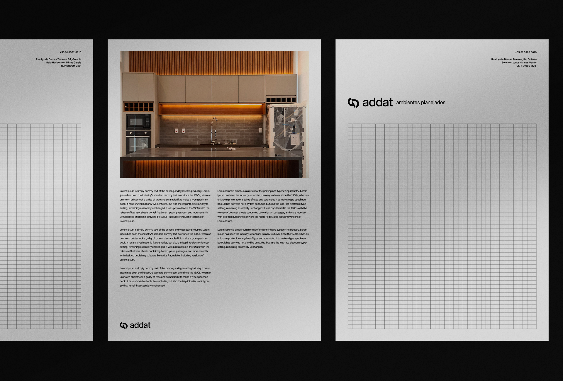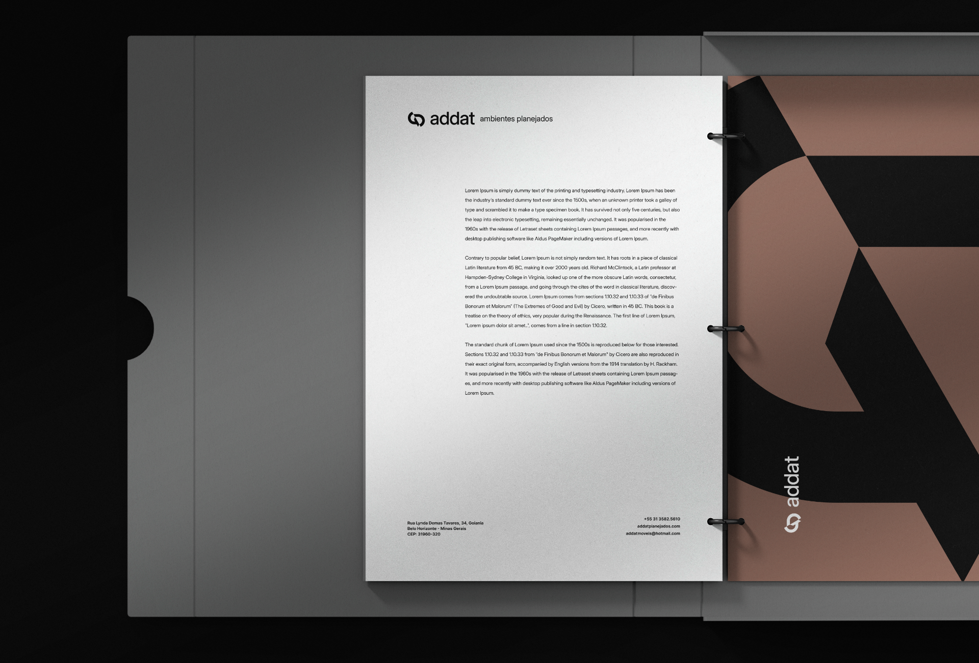 Considerando a atuação da Addat Ambientes Planejados, o desafio primordial consistia na concepção de uma logo que não apenas refletisse modernidade e criatividade, mas também expressasse, em sua essência, os valores de profissionalismo e seriedade.